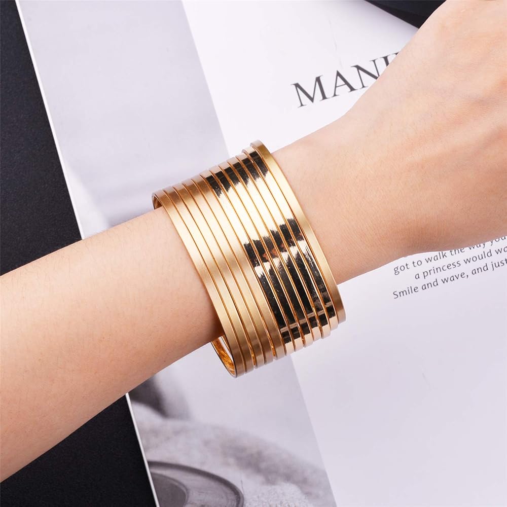 Ensoul Twisted Multiple Metal Bracelets & Bangles Set for Women 12Pcs/Set W/Clear Rhinestones