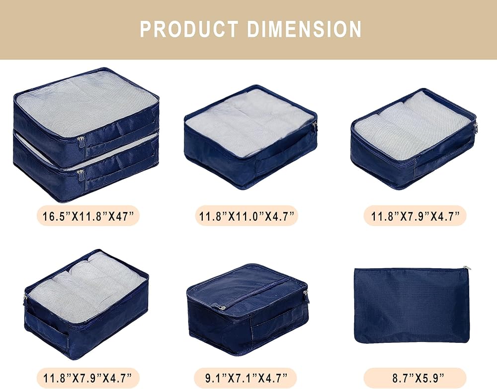 With You Everywhere - 5 Mesh Packing Cubes(different sizes), 1 underwear/bra cube, 1 shoes bag. Ideal for active lifestyles including traveling, camping and so on.