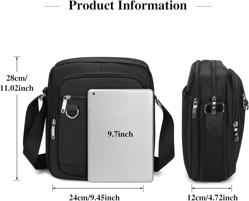 Multi Pocket Design: Our men's casual sports bag features with multi compartment,3 Zipper pocket, 1 front zipper pocket, 1 back zipper pocket, it can accommodate your iPad, wallets, books, phone, glasses, and other small tablets