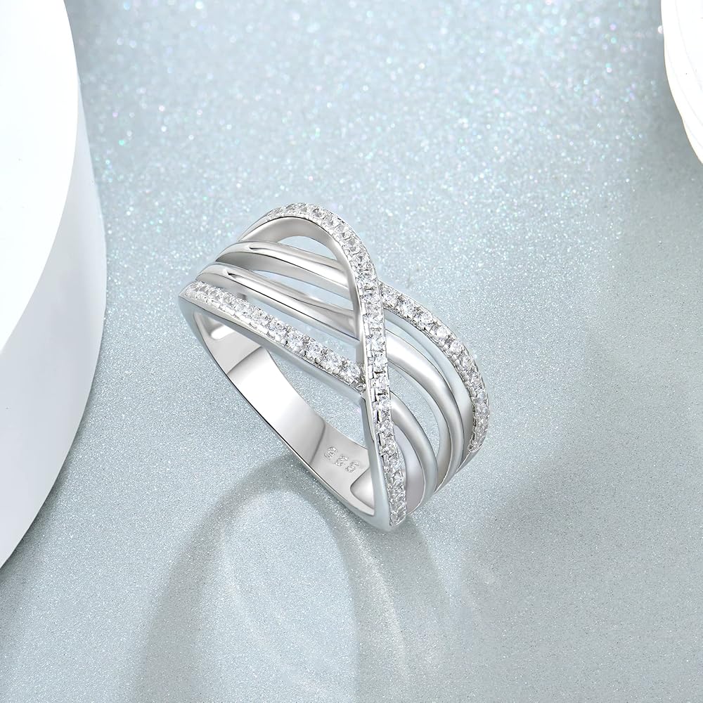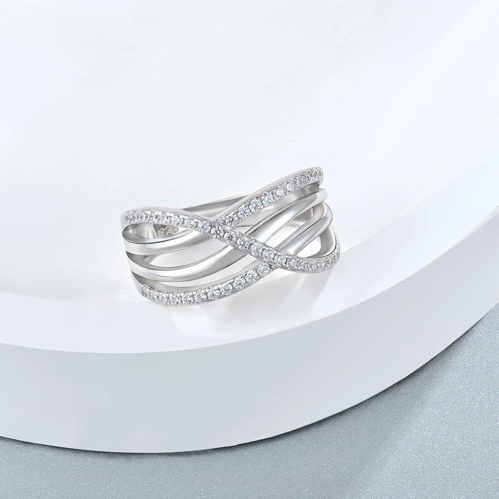 ✦ High-quality materials ✦ The crossover ring is made of 925 sterling silver and 5A cubic zirconia,platinum-plated to make the ring more shiny,suitable for people with sensitive skin, the ring is comfortable to wear