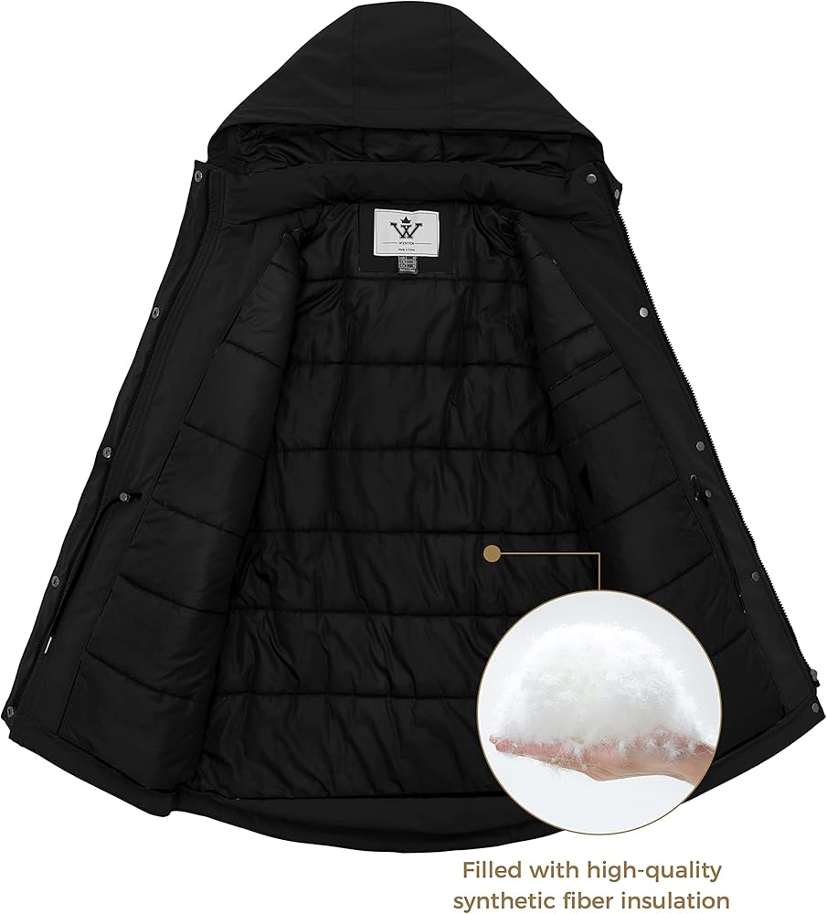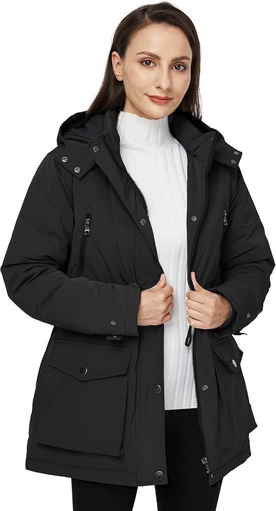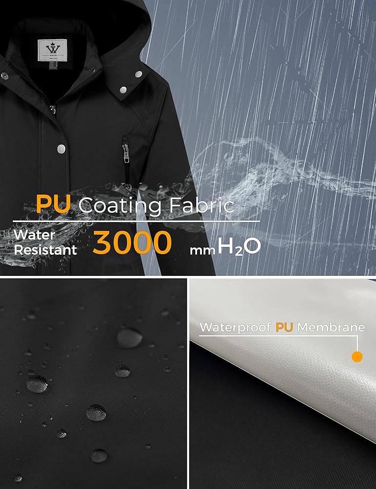 KEEP DRY AND COMFORTABLE -- Made by pu coated high density oxford outer fabric which finished by DWR, this women long winter parka jacket could work under 3000mm water pressure. When you go outside in the wet weather, this coat will protect you from the light rain and keep you dry all the day.