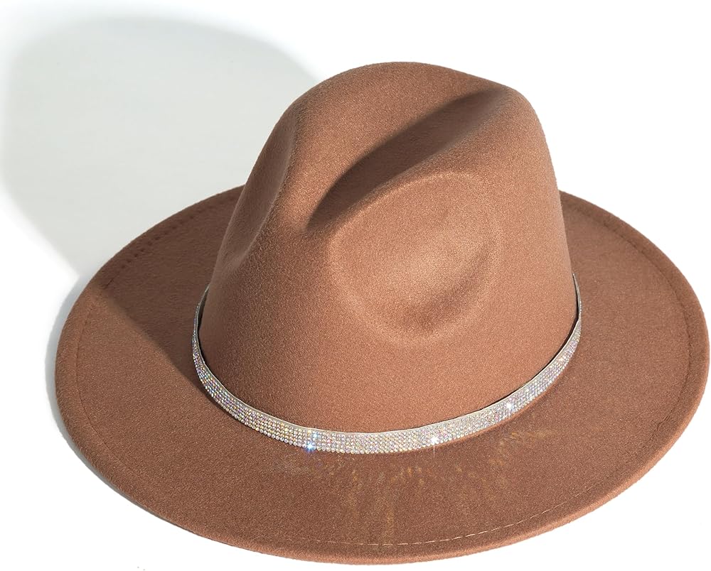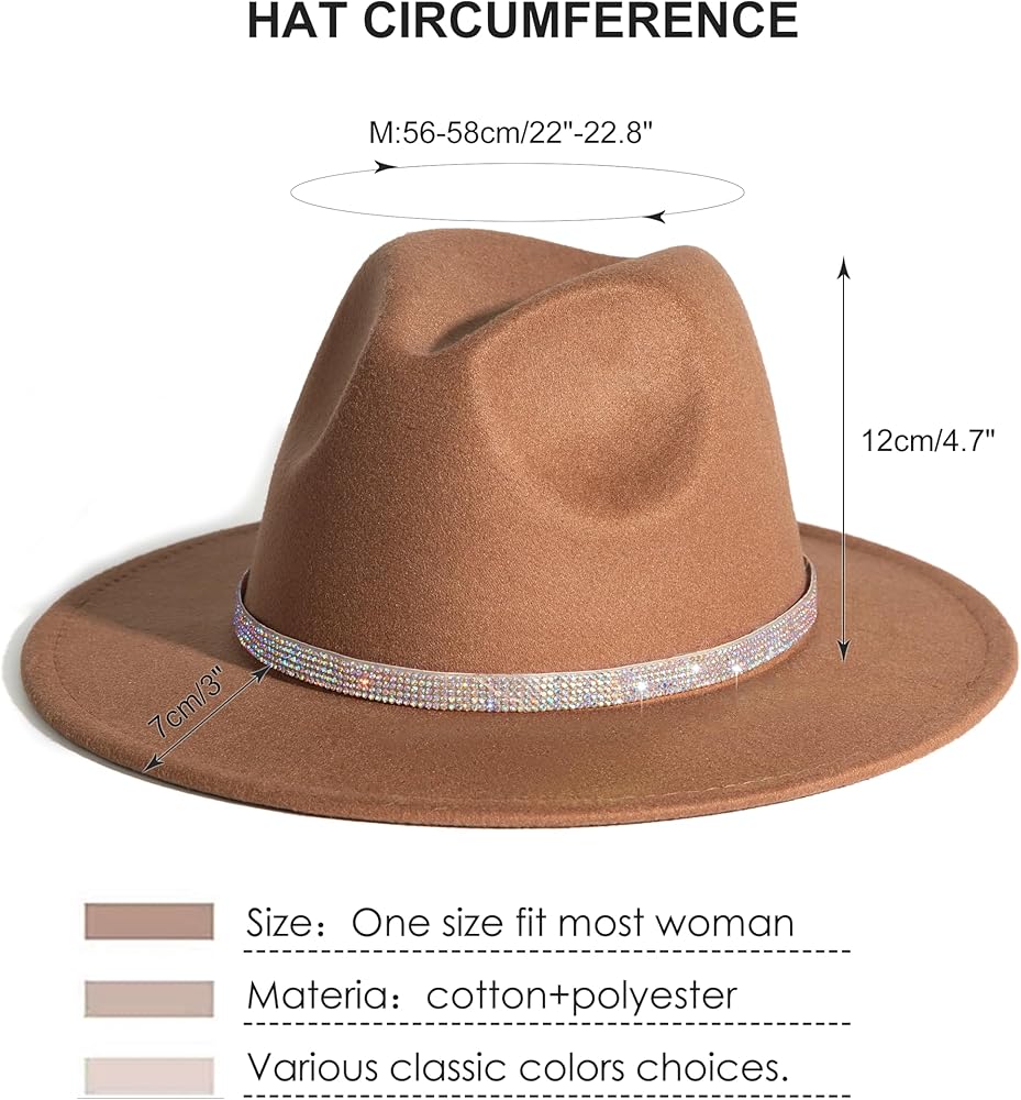 HUDANHUWEI Womens Wide Brim Fedora Hats with Shiny Rhinestone Belt Buckle