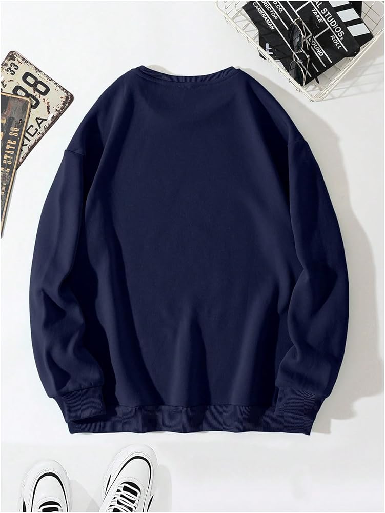 WDIRARA Men's Letter Graphic Round Neck Long Sleeve Sweatshirt Casual Tops