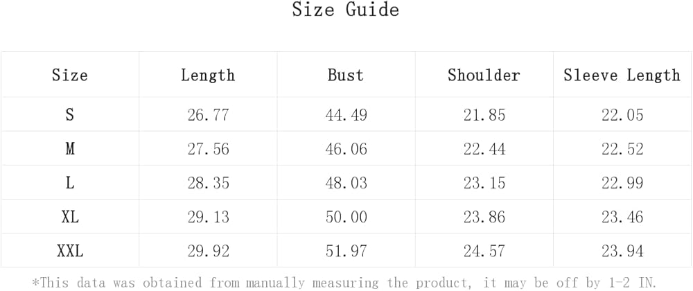 - Bust Size: (Small) 42.9 inch; (Medium) 44.5 inch; (Large) 46.5 inch; (X-Large) 48.4 inch; (XX-Large) 50.4 inch