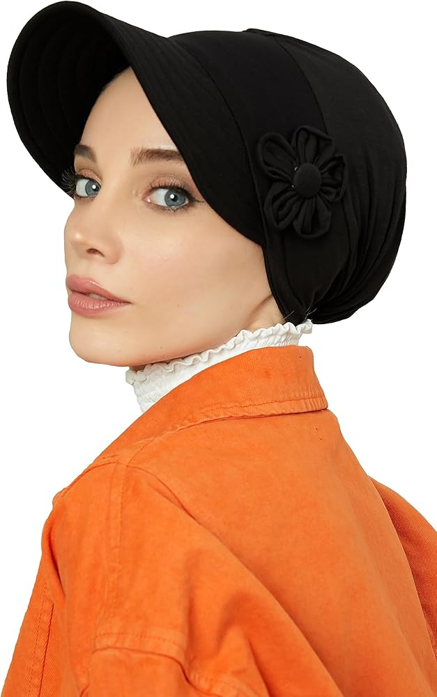 Aisha's Design Instant Turban Newsboy Women's Cap, 95% Cotton Bonnet-Hat Scarf Chemo Headwear Visor Cap with Flower