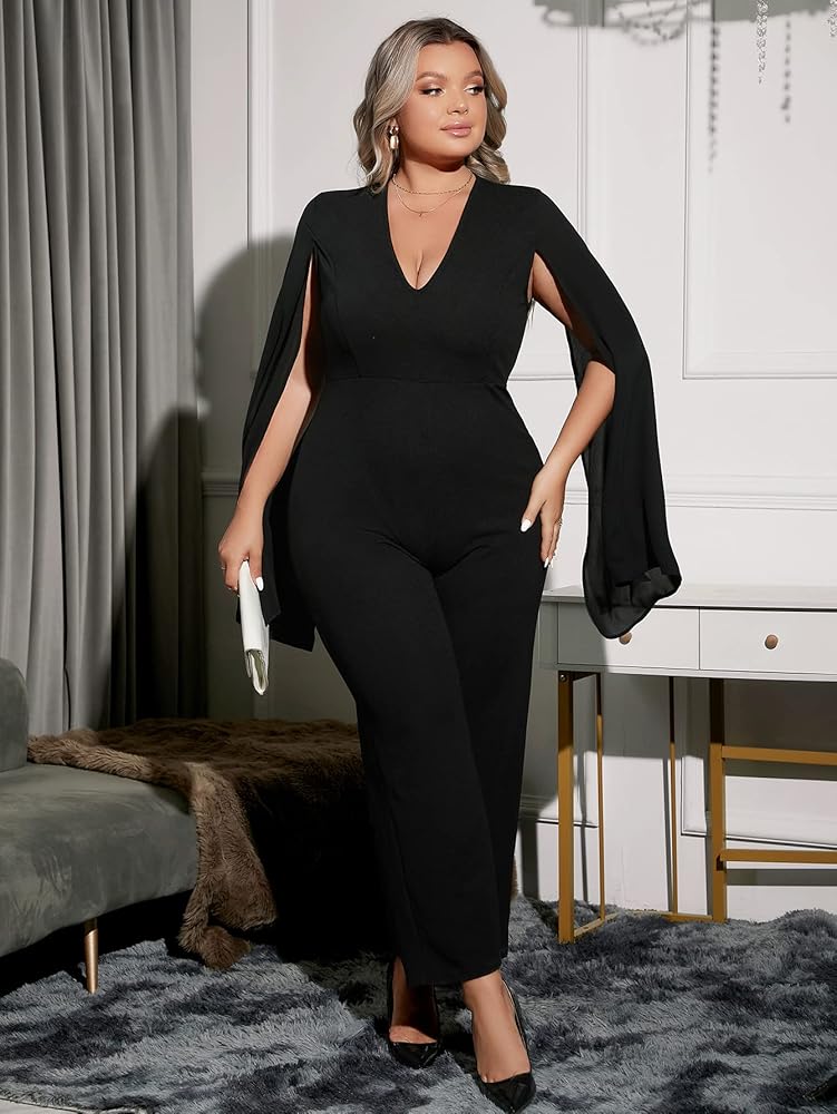 - Features: deep v neck,split,long sleeve,high waist,cloak sleeve,elegant,formal dressy jumpsuit romper