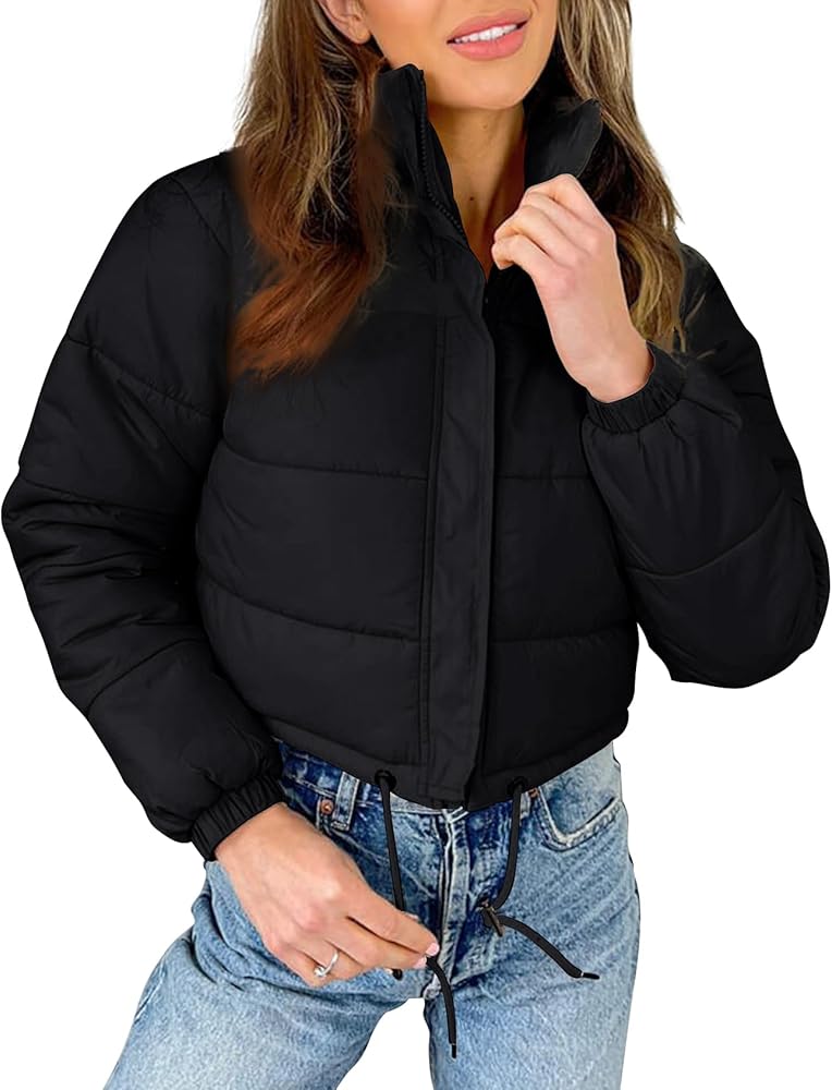 DESIGN: Quilted jackets for women/short puffer jacket women/bubble coats for women, stand collar, zip up, long sleeves, solid colors, crop length, elastic cuffs, drawstring hemline that can adjust freely, cute and fashionable.