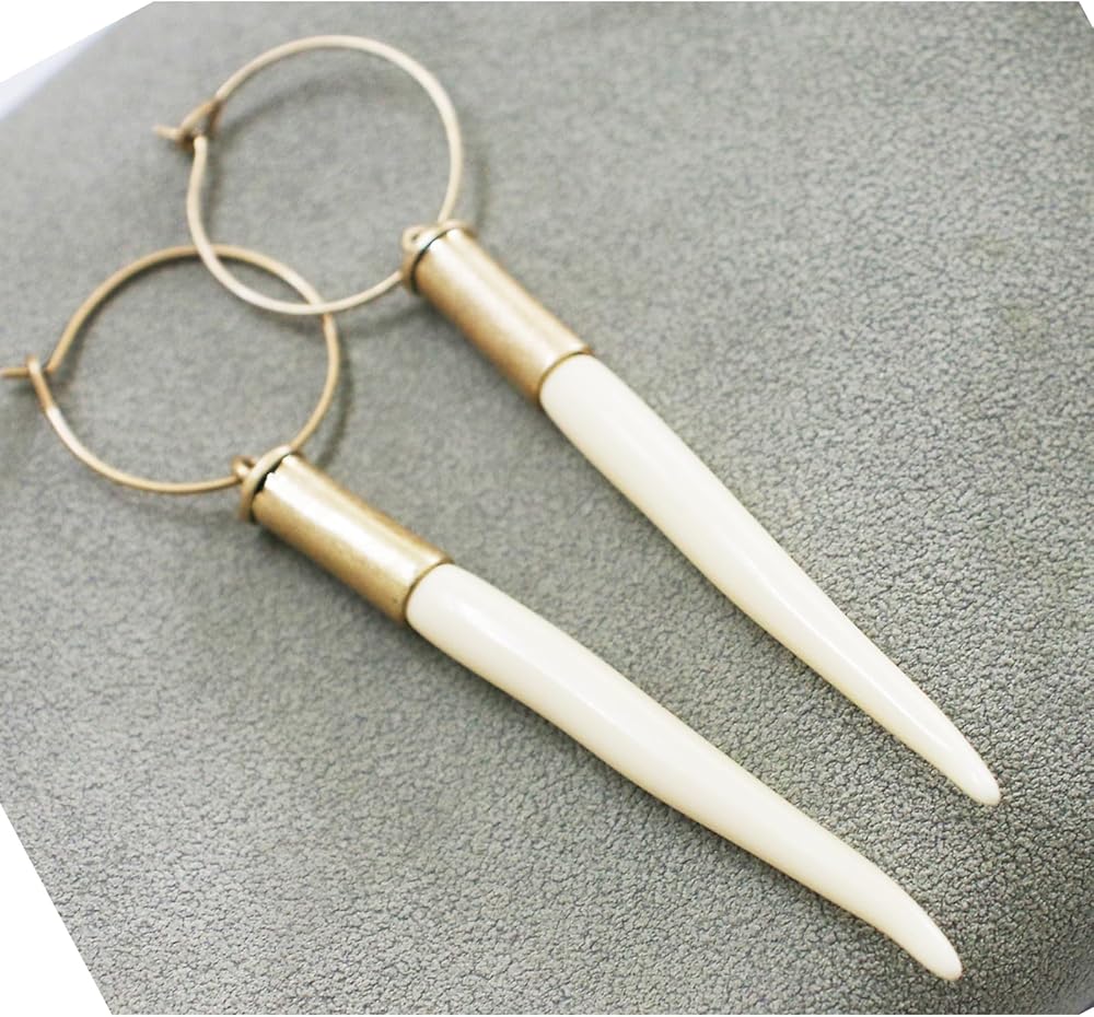 - Western Earrings handmade of brass and resin,the Porcupine Quill about 2.3inch,and thre earrings hoop is 0.8inch.