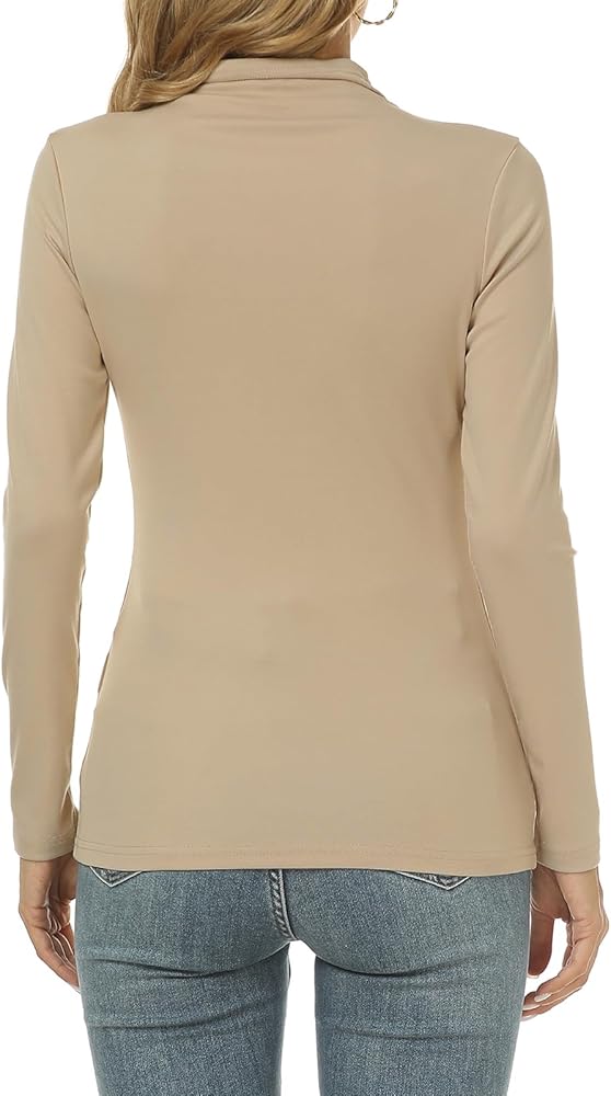 Mock Turtleneck: This fitted long sleeve top is lightweight and sleek. Not tight around the neck and very comfortable. This long sleeve top adds warmth without any bulk, great for traveling with limited bag space