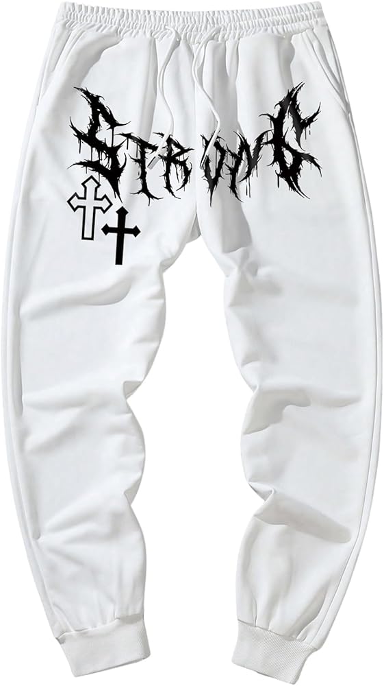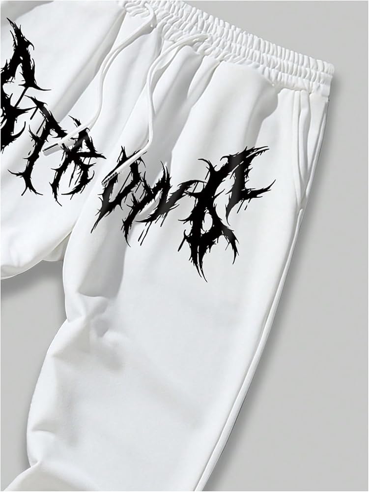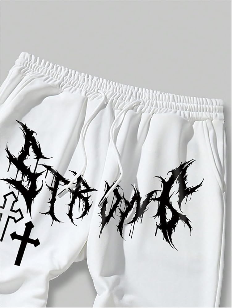 WDIRARA Men's Floral Letter Graphic Print Drawstring Waist Tie Front Sweatpants