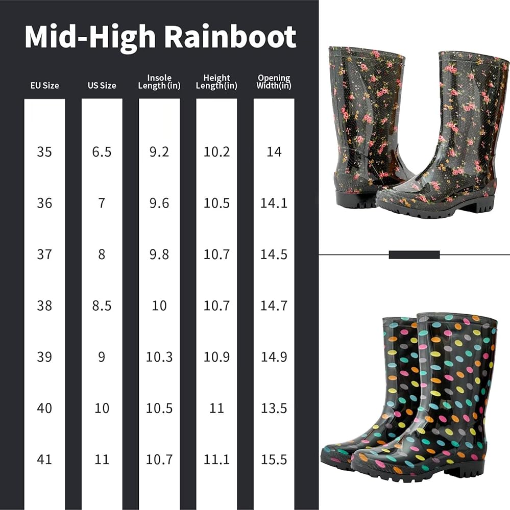 【Wide Application】The rain boots for women are suitable for gardening, farming, fishing. For a more comfortable fit, if you have wide insteps, we recommend taking a size up.