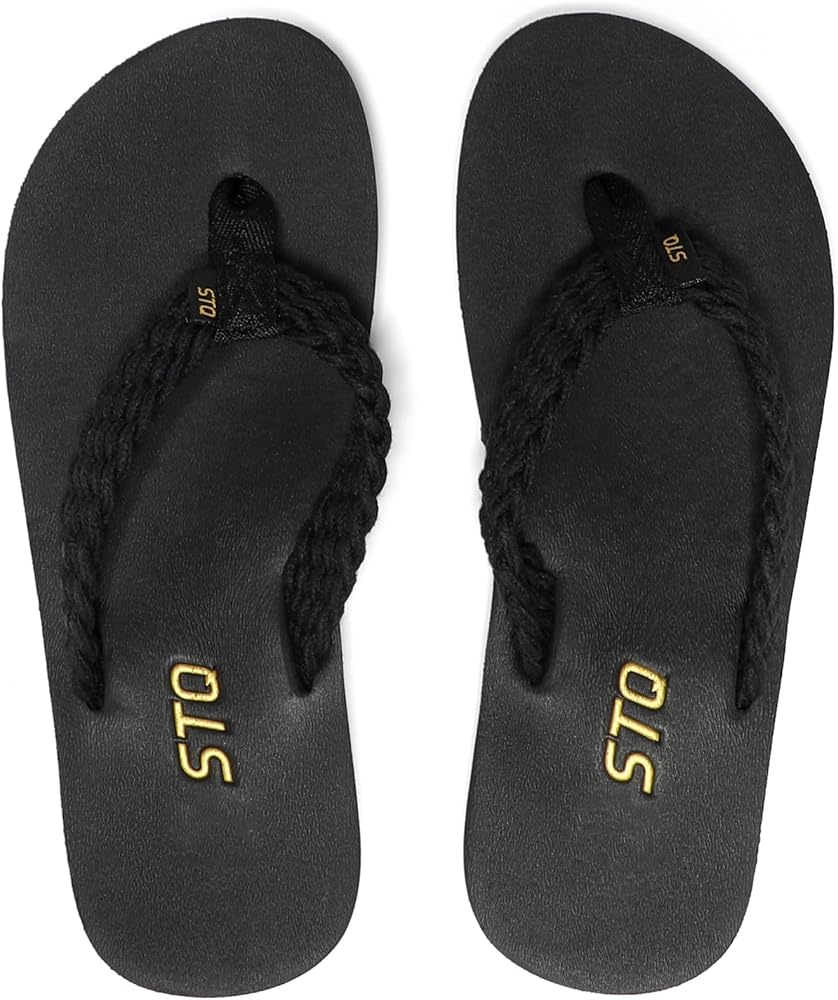 Comfortable: The STQ flip flop features a soft, water friendly yoga mat foam with a wide braided cotton strap for comfort between the toes. The molded brushed texture footbed absorbs impact, cushioning every step