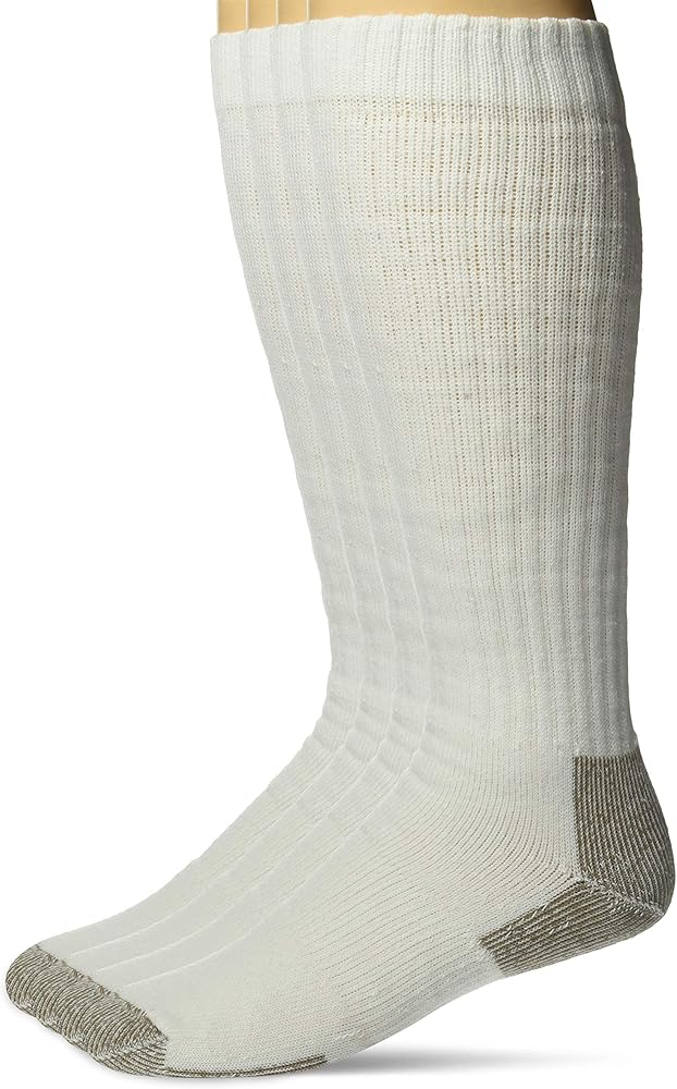 Carolina Ultimate men's steel toe boot cushion over the calf socks 4 pair pack are built for steel toe work boots and provide mid weight comfort, over the calf protection, full cushion leg and foot, ultra-dri moisture wicking technology, reinforced heel and toe, ribbed top, and seamless smooth toe that is sensory friendly. Perfect for steal toe boots, tall boots, work boots, outdoors, and everyday.