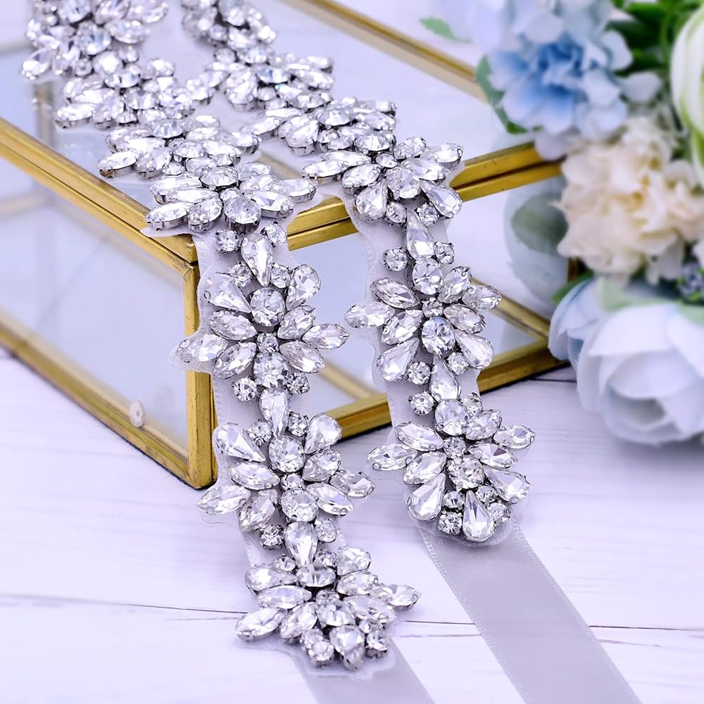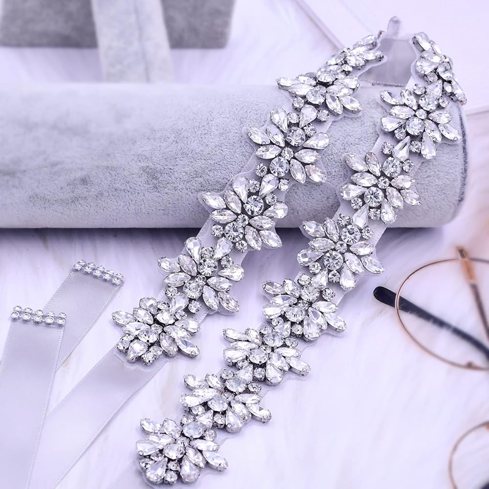 Size:Wedding dress belts rhinestones applique size(W x L):1.37"*16.14"/3.5*41CM, Ribbon size0.78"*108.26"/ 2*299CM, Enough size of bridal belt can meet the needs of various bride figures.