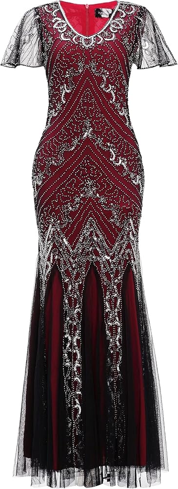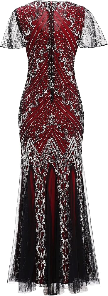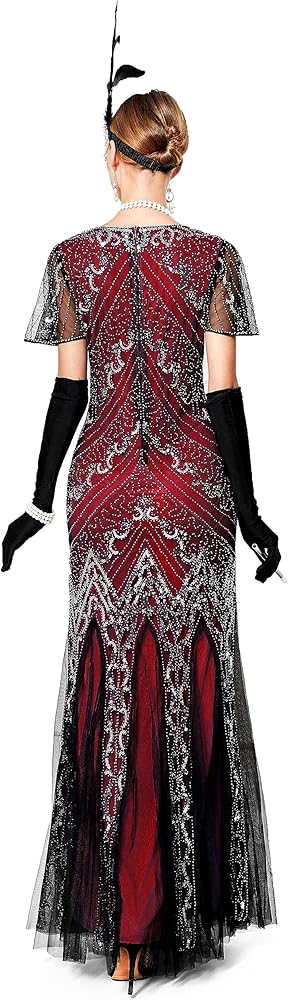 Whether you're attending a wedding, prom, or formal event, this Women's Short Sleeve Evening Maxi Long Dress with 20s Gatsby Accessories Set will make you feel like a true star of the era. With its attention to detail, sparkling sequins, and complementary accessories, it offers a timeless and captivating look that is sure to turn heads and make a lasting impression.