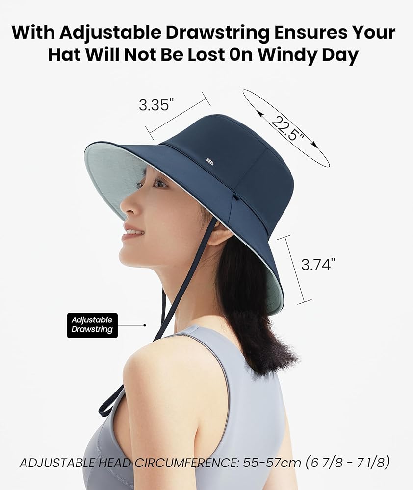 REVERSIBLE: Both sides of the sun hat are wearable, with different colors. You only need to detach the drawstring and reverse the hat to the other side, then hook up the drawstring again.
