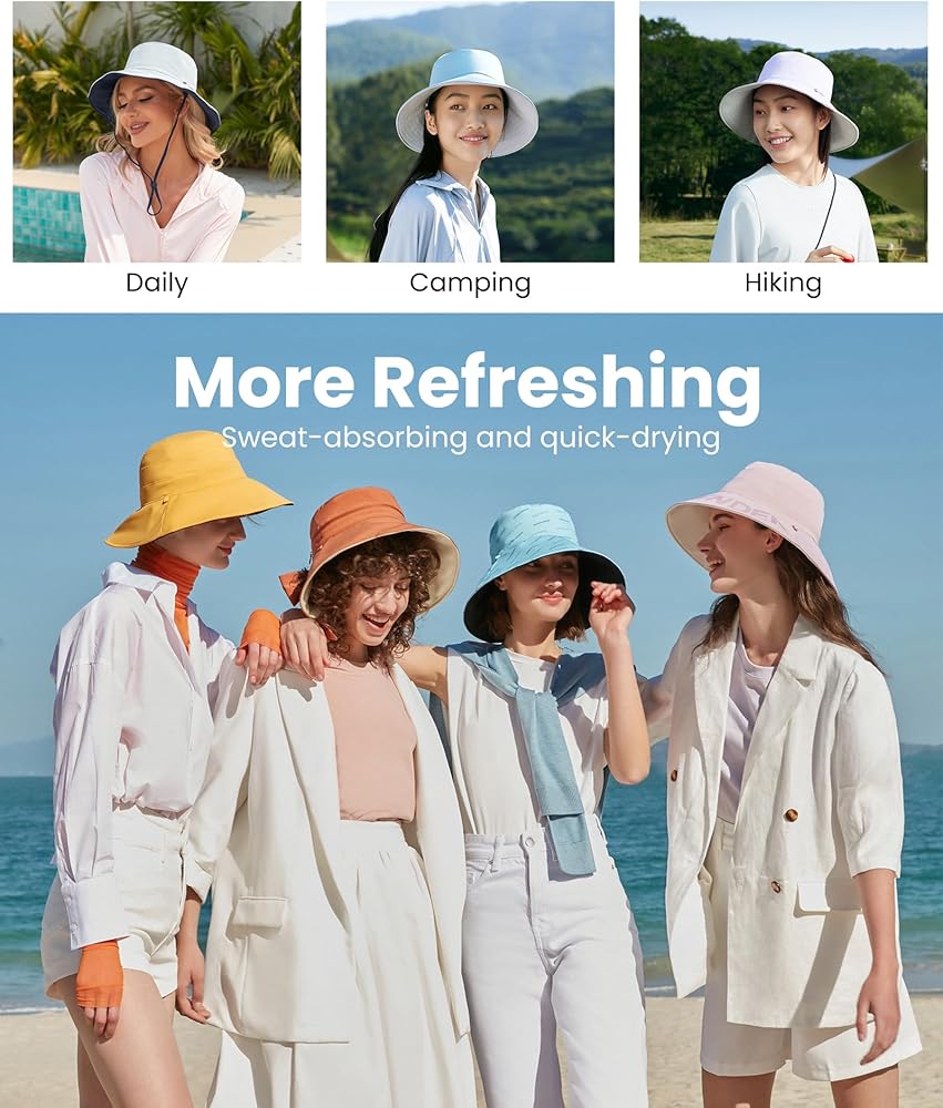 UPF 50+ SUN BLOCK: Protects your eyes, face and neck from harmful UV, lowering the temperature under the brim, gives you a cool and skin-healthy wearing experience.