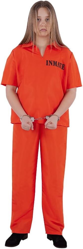 - Real Prisoner Look: "INMATE" logo featured at the front left of costume.