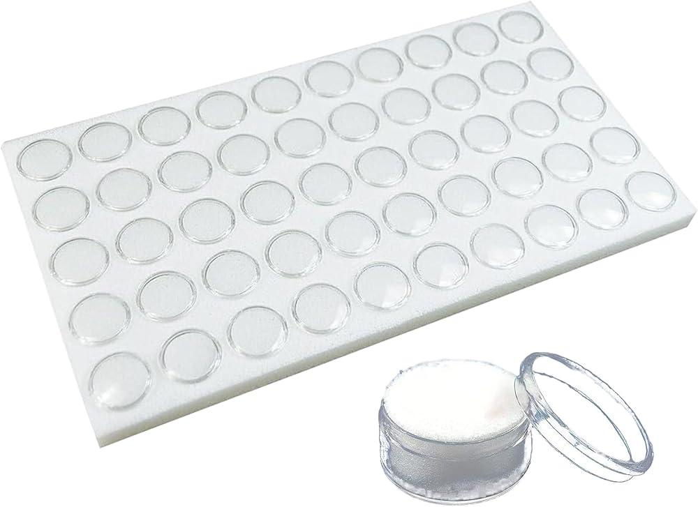 MATERIAL- 50 Acrylic Clear jars with tight Lid and white foam insert and Standard size White foam liner.