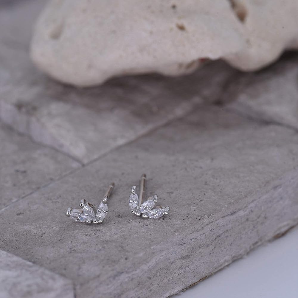 Gorgeous delicate stud earring with crown-shaped cubic zirconia gemstones. Comfortable, minimalist and chic, these earrings match with everything and can be worn for any occasion. You can wear it for your helix, ear lobe and cartilage earring.