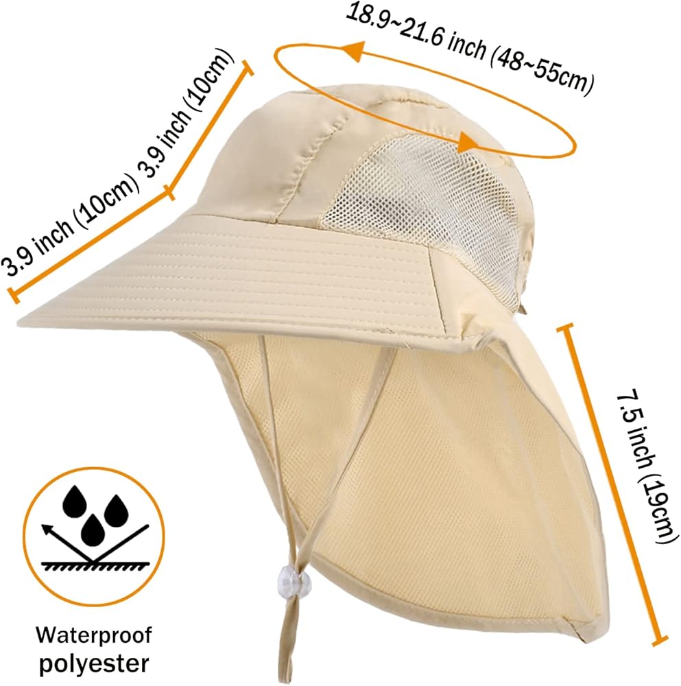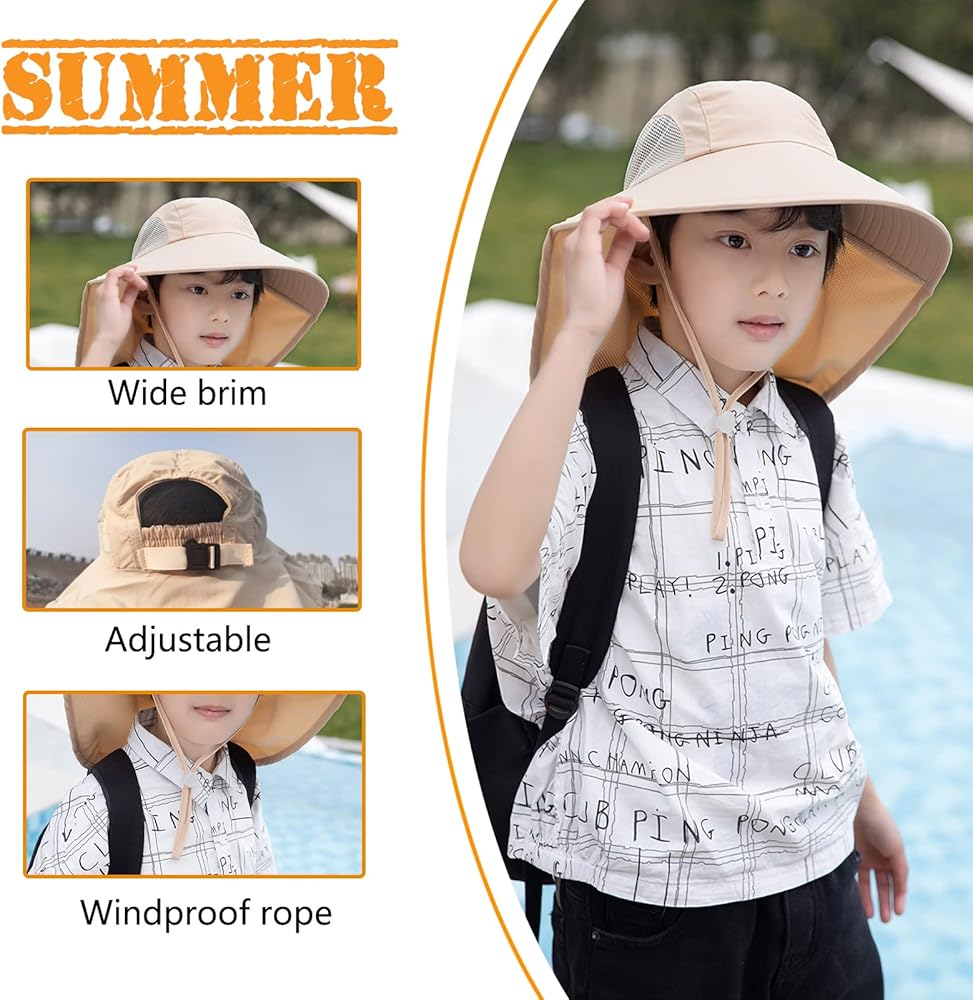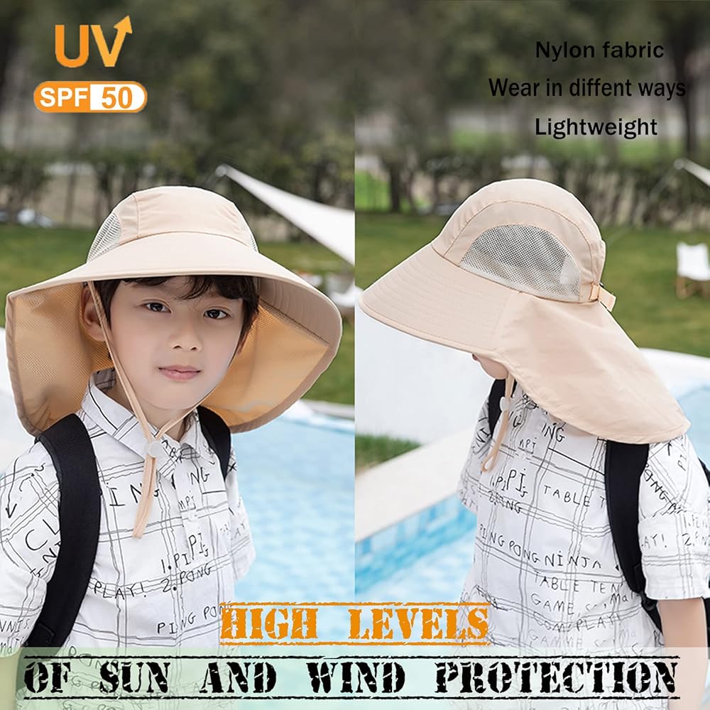 【Lightweight and Breathable Fabric】: Aenmt kids sun hat is made of nylon quick-drying fabric,soft and lightweight.Foldable, Aenmt kids sun hat head can be folded back with a buckle for easy carrying.