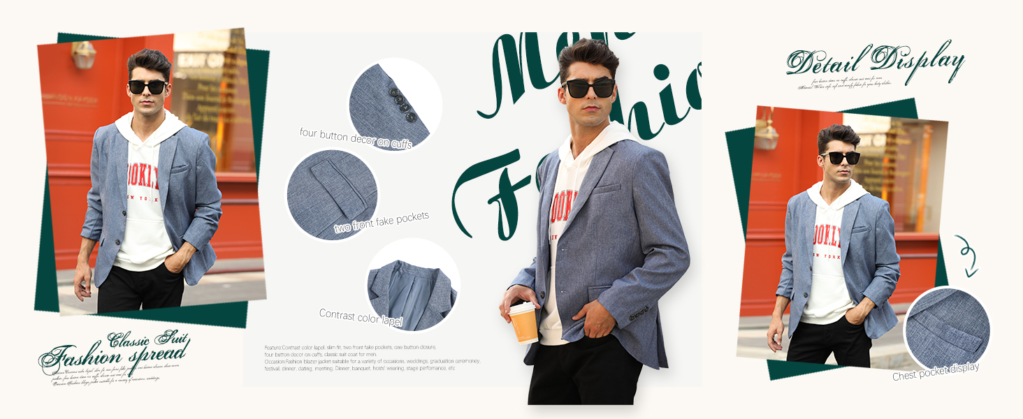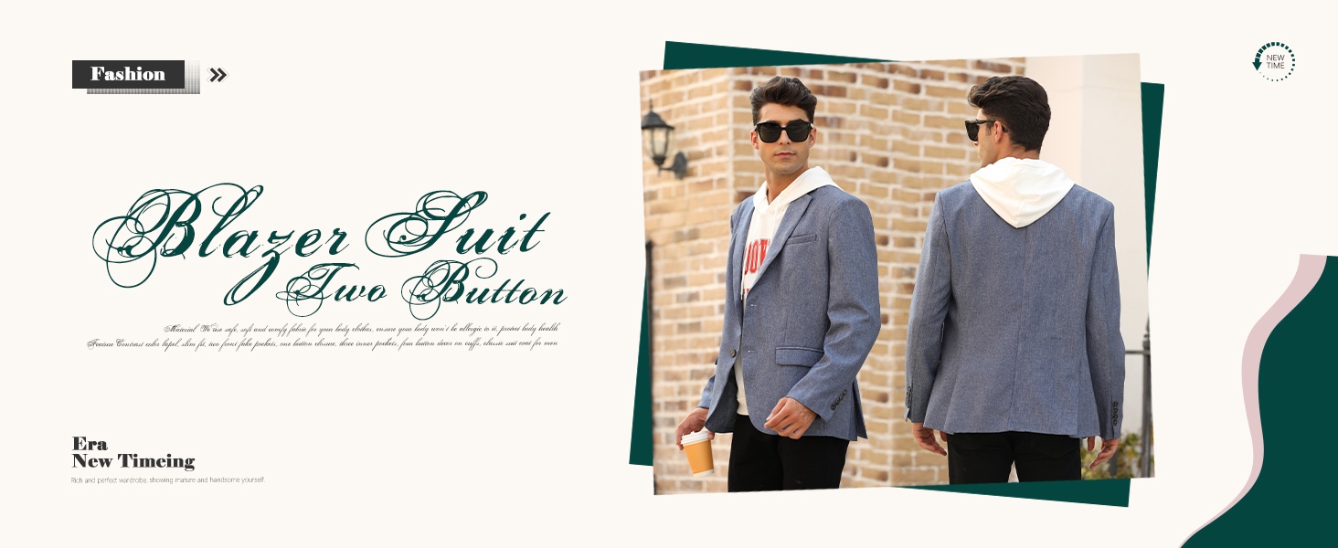 Men Causal Suit Two Button Blazer Jacket Dress Suit for Dinner,Prom,Party Blue