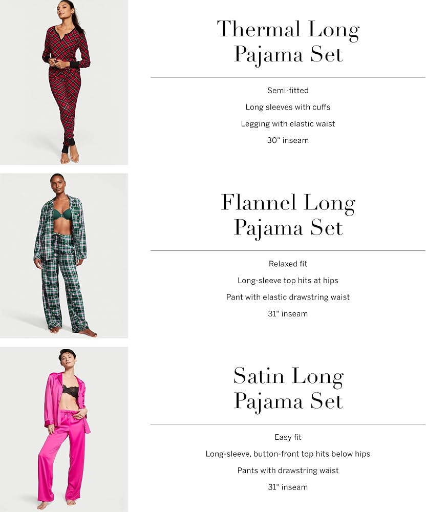 The Victoria's Secret Flannel Long Pajama Set is designed to keep you warm and comfortable during those chilly nights. Made from high-quality flannel fabric, these pajamas envelop you in softness and warmth, providing the perfect cocoon for relaxation and restful sleep. The material is gentle on your skin and feels delightful to wear. This pajama set for women comprises a long-sleeve top and matching pajama pants. The classic red shirt adds a touch of holiday cheer, making it an excellent choice for Christmas pajamas or special occasions. The pajama pants are equally cozy and feature a comfortable, adjustable waistband for a personalized fit. VS prioritizes Size-Inclusive Designs. Victoria's Secret understands the importance of size inclusivity. That's why these pajama sets are available in a range of sizes. Everyone deserves to enjoy luxurious comfort, and this set ensures that no one is left out. These pajamas are not just for bedtime; they are a versatile loungewear set suitable for all-day relaxation. Whether you're unwinding after a long day at work, having a lazy weekend at home, or enjoying a movie night with friends, this set will keep you looking stylish and feeling snug. Looking for the perfect gift for a loved one? The Victoria's Secret Flannel Long Pajama Set is an ideal choice. Its luxurious feel, classic design, and attention to detail make it a thoughtful and appreciated gift for birthdays, holidays, or bridal parties. Shopping for this set is a breeze with Victoria's Secret. You can explore more details and options on their website, making it convenient to choose the size and style that suits you best. The Victoria's Secret Flannel Long Pajama Set is the perfect blend of style, comfort, and versatility. Whether you're enjoying a quiet night in, hosting a pajama party, or surprising a loved one with a thoughtful gift, these pajamas for women set the standard for quality and coziness.