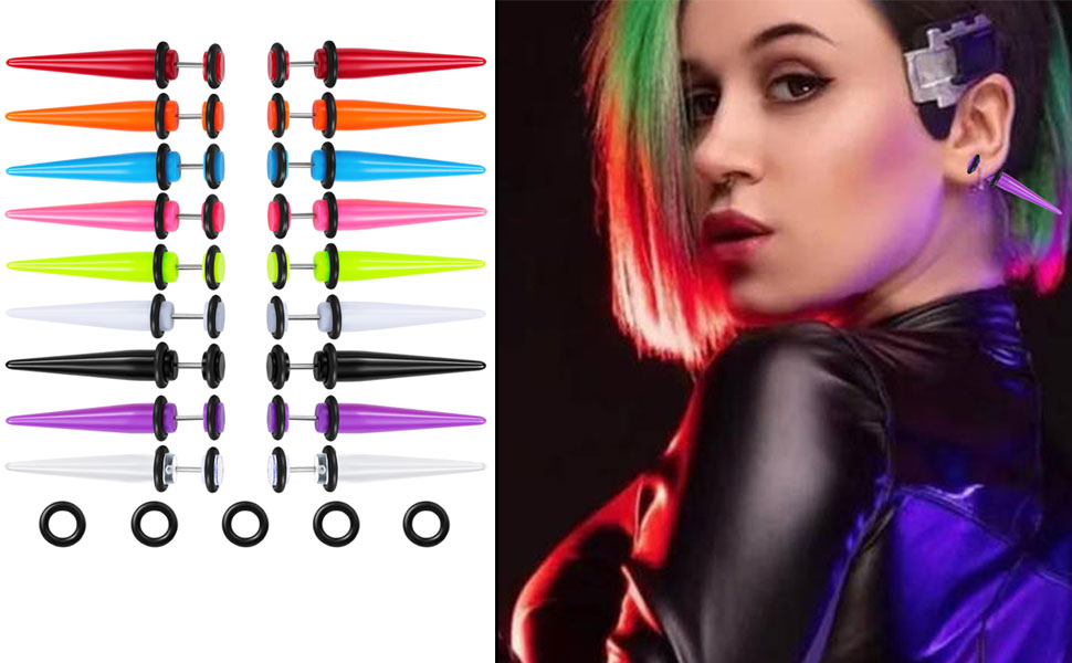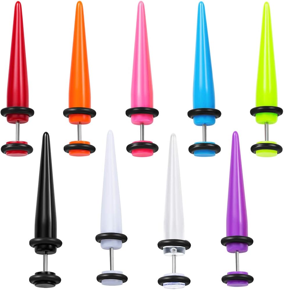 SENNI 9 pair Acrylic Fake Illusion Tunnel Cheater Stud Earrings Set Body Piercing Jewelry For men Women