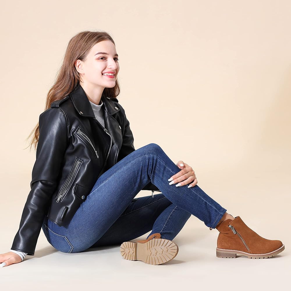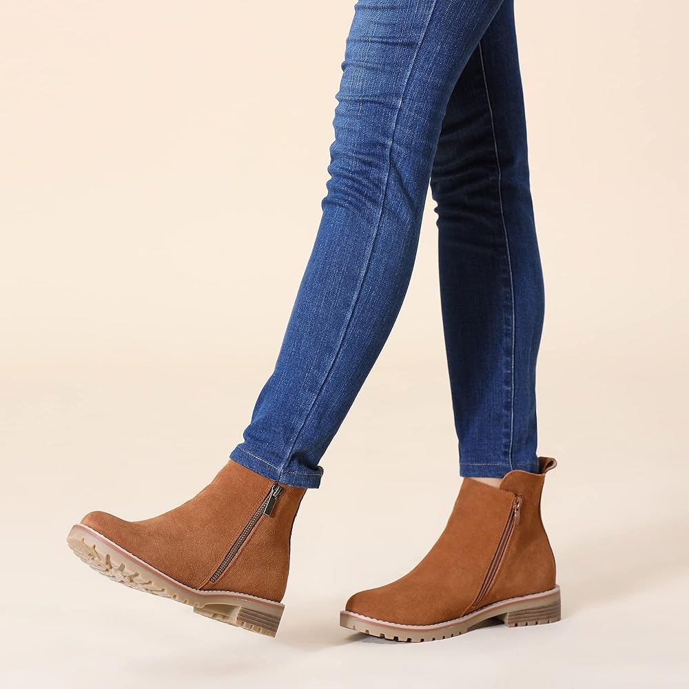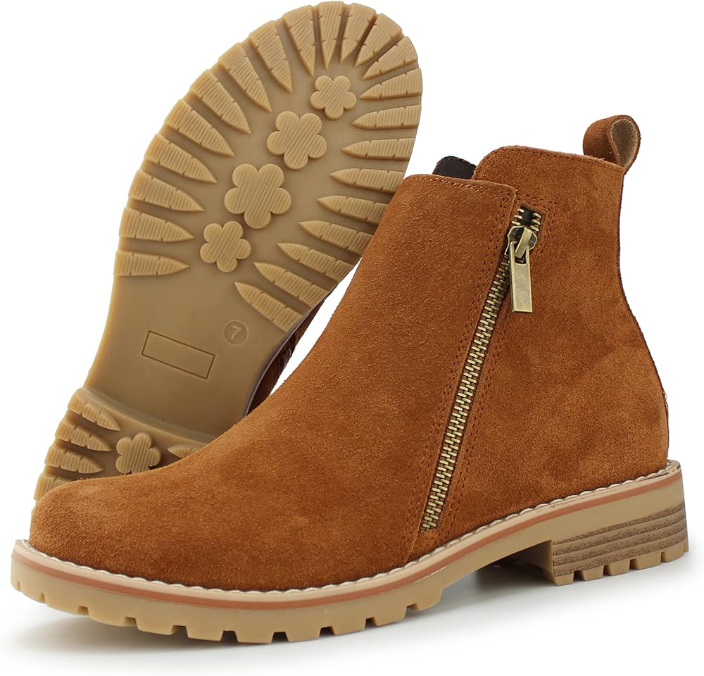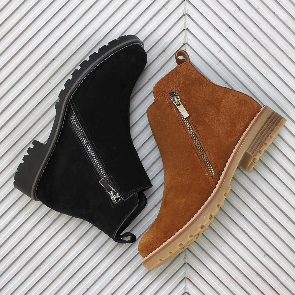 Hawkwell Women's Suede Leather Low Heel Zipe up Ankle Boots