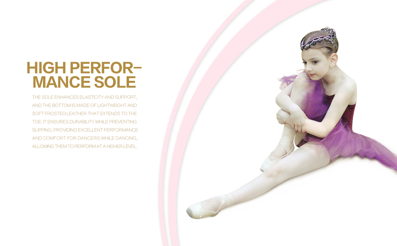 2. High-performance sole: The sole enhances elasticity and support, and the bottom is made of lightweight and soft frosted leather that extends to the toe. It ensures durability while preventing slipping, providing excellent performance and comfort for dancers while dancing, allowing them to perform at a higher level.