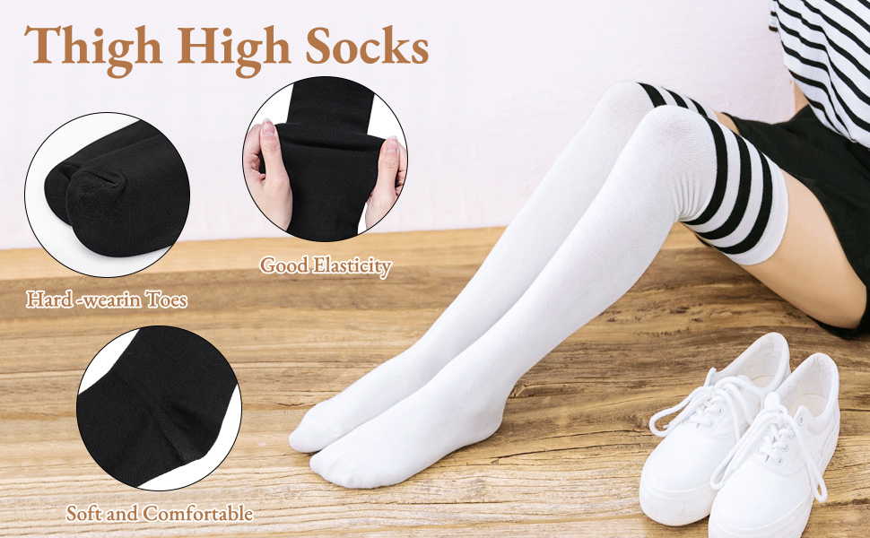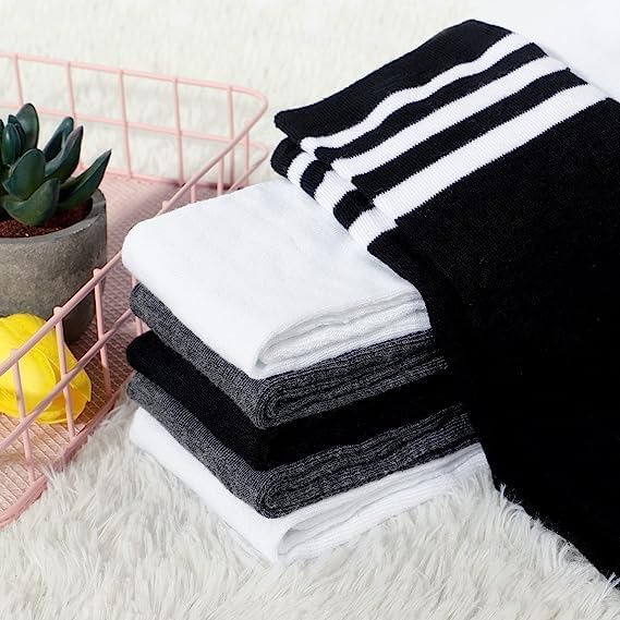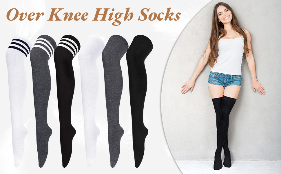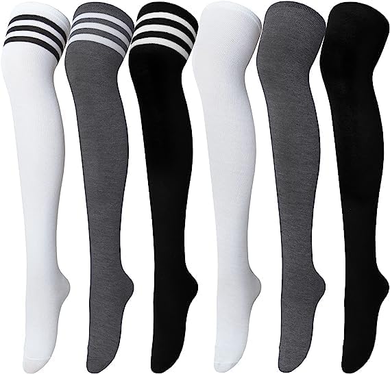 Package Content: 6 pairs of thigh highs in one package. Knee high socks for women are many styles for you to choose from: three stripe style, solid color style and two stripe style. Various classic color combinations and different styles can meet your different tastes and preferences.