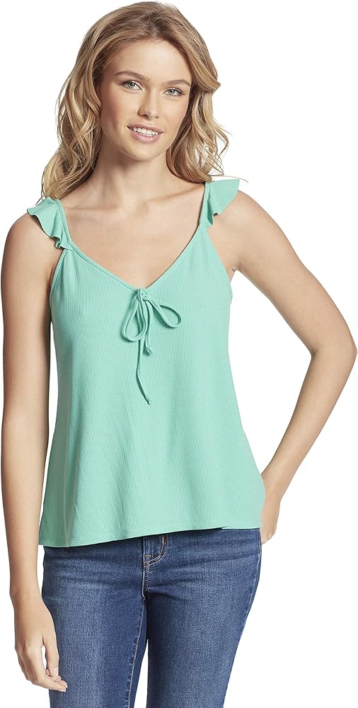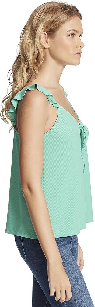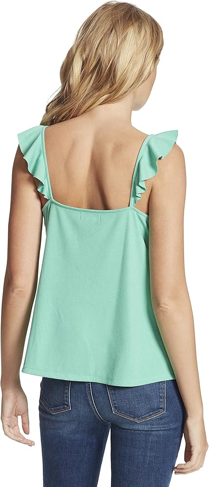 Jessica Simpson Women's Piper Dainty Ruffle Strap Rib Tank Top
