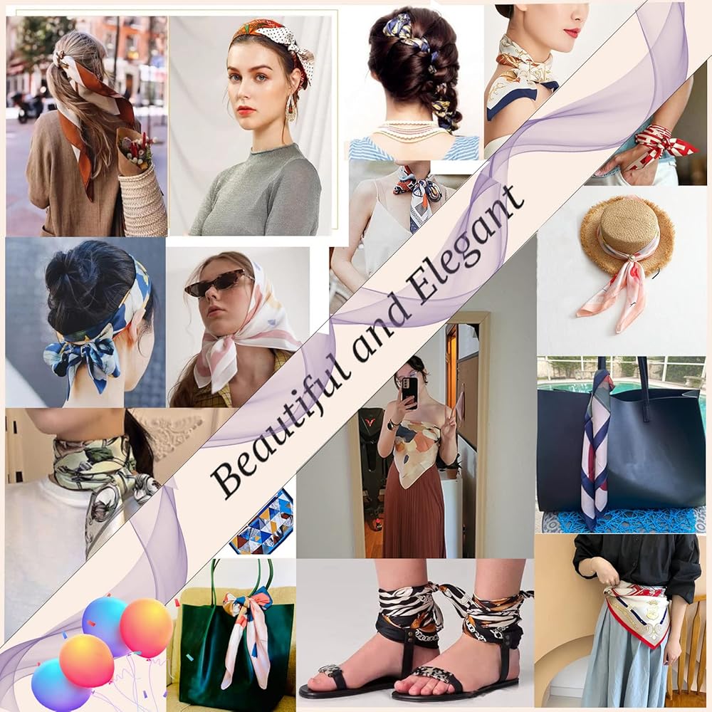 المناسبات: يمكن استخدام هذا الوشاح المربع كوشاح للشعر، ووشاح للرقبة، وأربطة شعر، ووشاح، وربطات عنق، وحزام يد، وإكسسوارات لحقائب اليد وما إلى ذلك. يمكن ارتداؤه مع أي زي في المناسبات اليومية الكاجوال والمواعيد والزفاف والسهرات وحفلات الكوكتيل والحفلات ذات الطابع الخاص والعمل والمناسبات الأخرى.