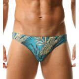 This swimsuit has a low waist and a drawstring closure. The label on the waist of swimming briefs can be easily torn off with bare hands.