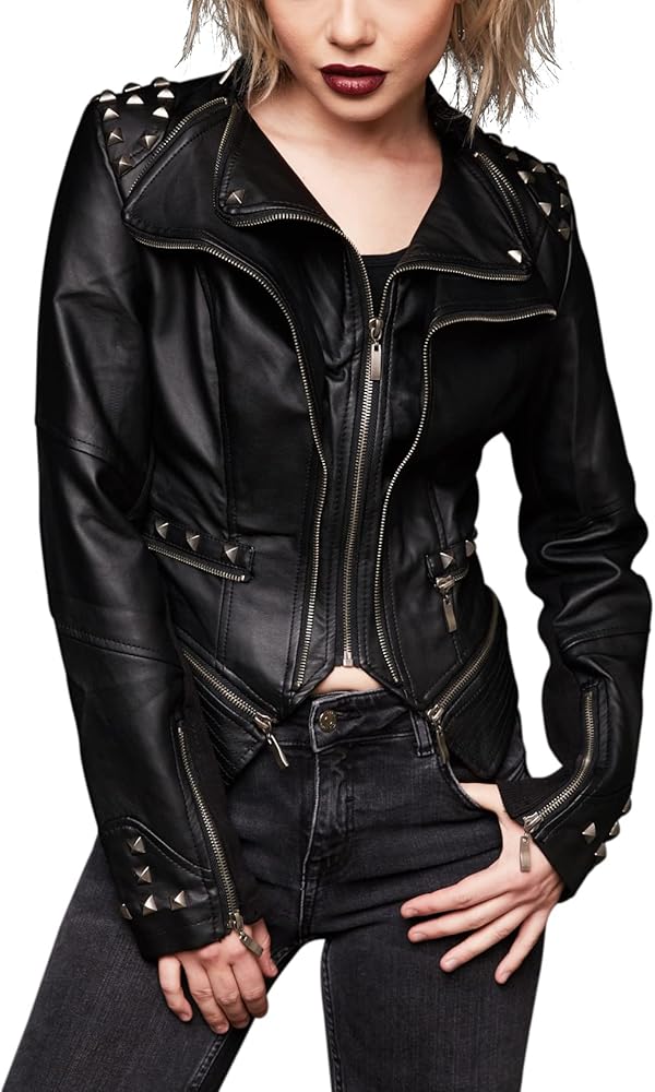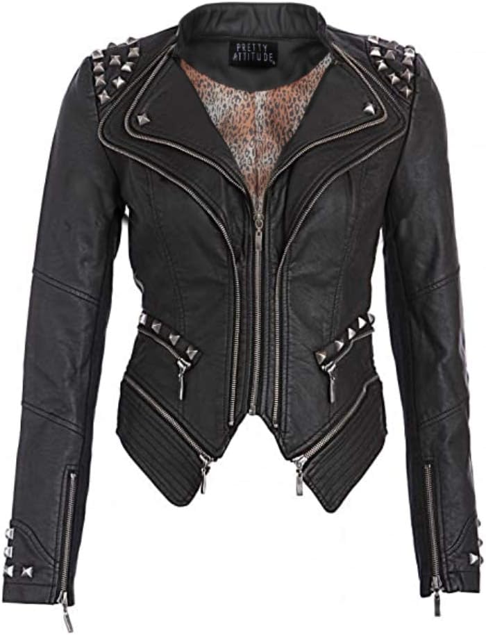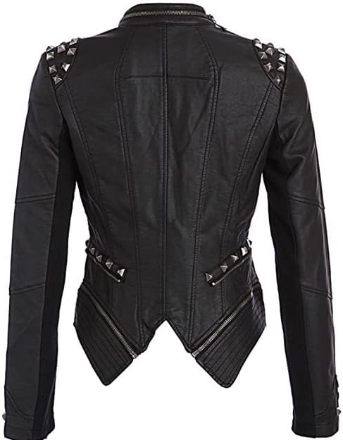 Black Faux Leather Jacket Women Punk Studded Moto Jacket
