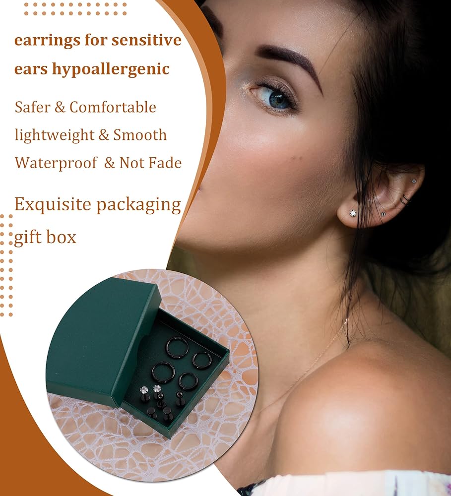 💎Titanium Earrings for Sensitive Ears:💎 You will get 3 pairs of hypoallergenic titanium flat back earrings and 2 pairs of 8mm 10mm titanium hoop earrings. Including dot ball cubic zirconia titanium cartilage earring. These stud earrings are made of implant-grade titanium, which allows you to sleep or nap without removing the stud earrings.