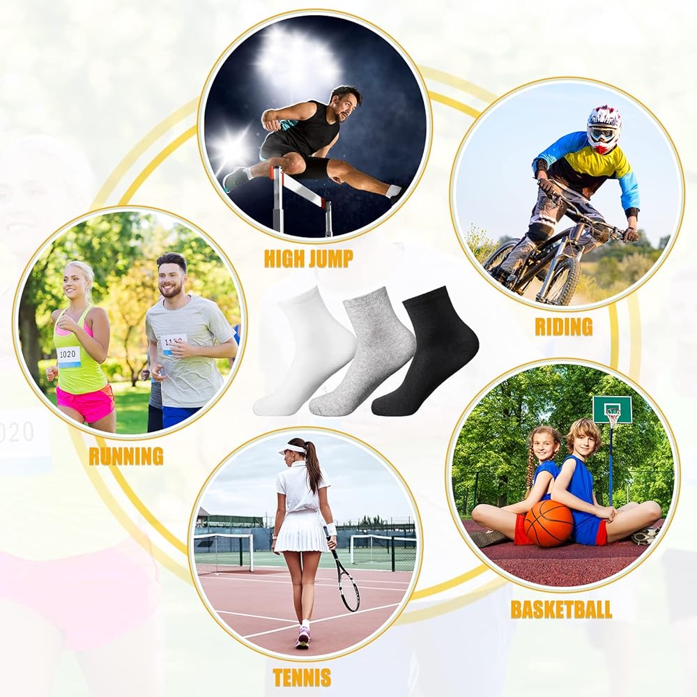 Casual Sports Socks: these short casual sports socks are perfect for everyday wear, available in white, black and grey, the simple colors are perfect for a variety of outfits, whether you're wearing sneakers, shoes, or boots, these socks are great for you choose