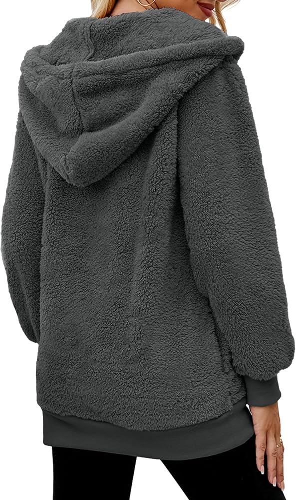 Oversized, plus size, warm outerwear, with hood and pockets, fuzzy hooded tops, womens shearling sweatshirt, casual and cute style, faux fur sweater, chunky hoody coat, solid color