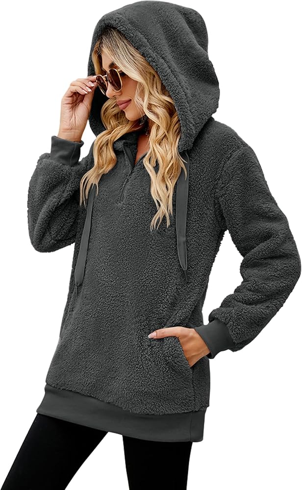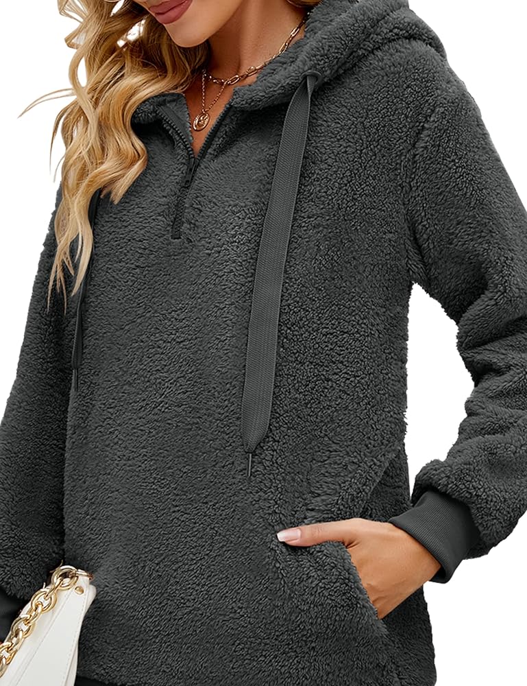 Fuzzy sherpa fleece material hoodie pullover is very comfortable and loose to wear and you won't feel tight in it, super warm and soft enough, breathable, cozy, comfortable
