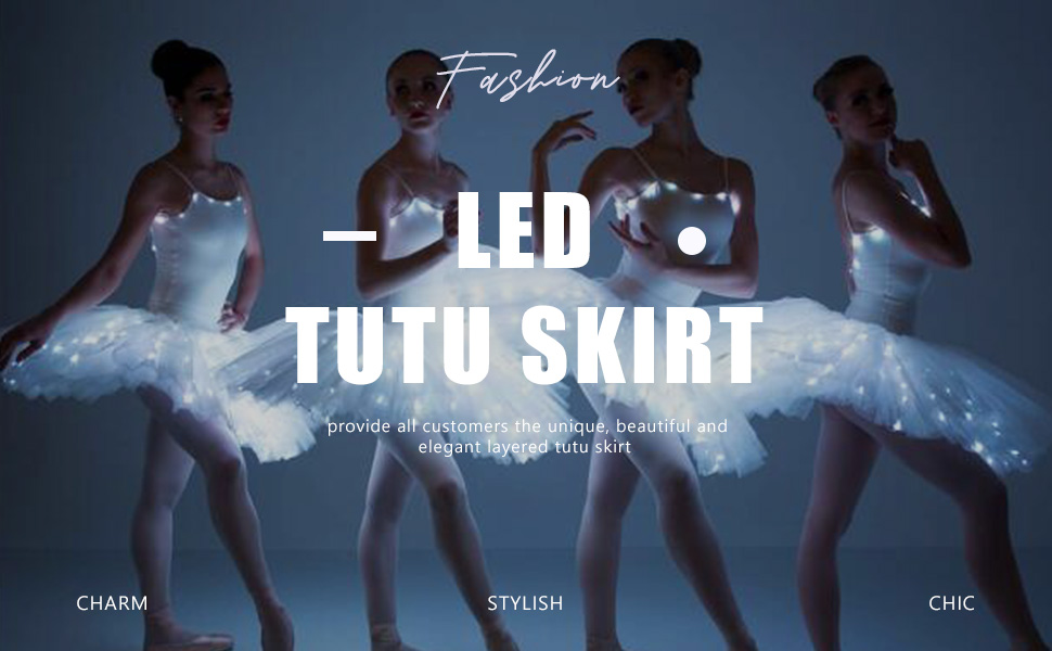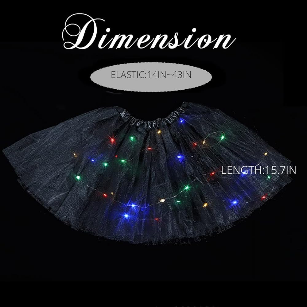 Light up tutu skirts is in shiny and princess style. Led light design will make you eye-catching and attractive in night. It also can be matched with the different costume or be worn with leggings as skirts.