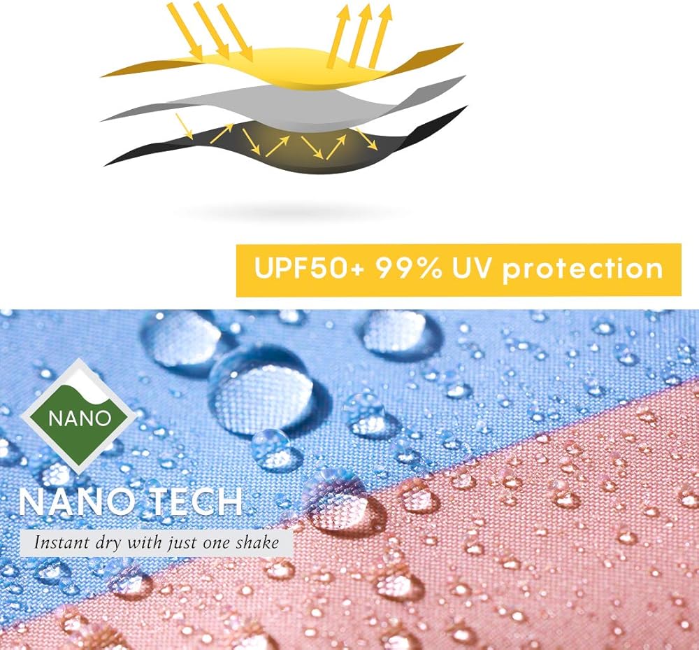 【Fast dry and UV proof】 - Nano tech super water-repellency coating canopy, instant dry with just one shake. UPF 50+, blocks 99% of harmful UV sun rays, no longer afraid of being burnt by the extreme sunlight