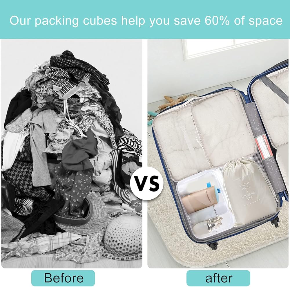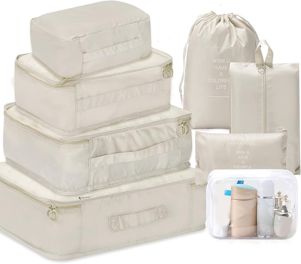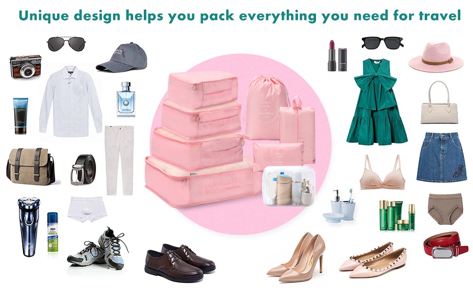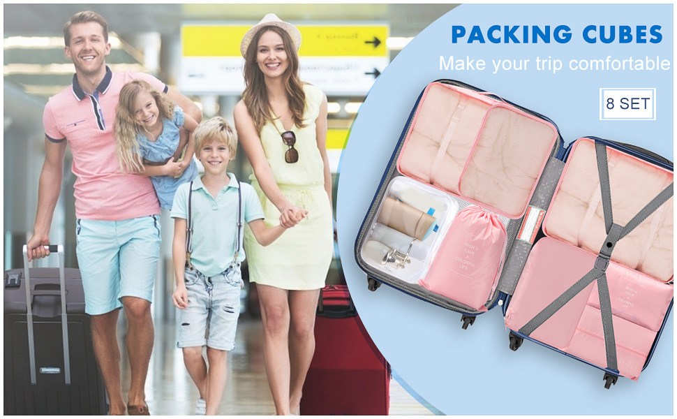 Multifunction - 8 different size packing organizers that can hold clothing, footwear, toothbrushes and more ,it has a lot of compartments,can keep clean.Also make the perfect travel tote for makeup and beauty products, cosmetic bottles, toiletry kits, pantyhose, delicates, small purses, and even camera accessories. and these organizers can fit in most airline carry-on suitcases, totes, weekenders, backpacks and duffel bags. A very wise choice for you to use our 8 Set packing bags for family.
