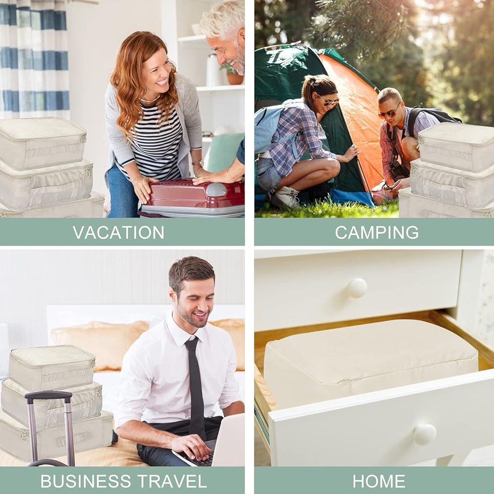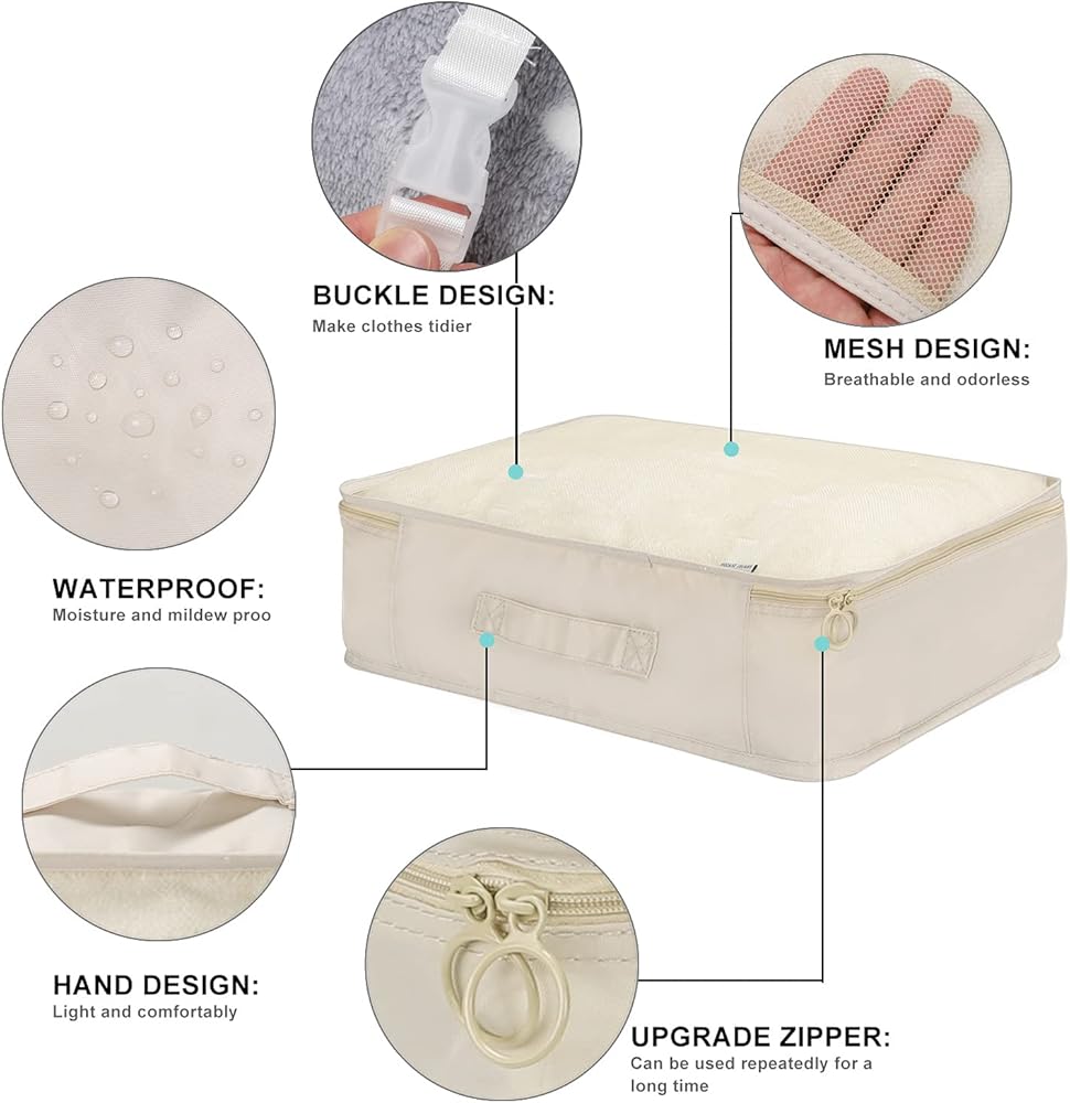 Newly Upgraded Fabric - Worried about zipper problems? Worried that the fabric is flimsy?Our packing cubes use high quality Polyester Fabric,highly durable,dustproof,waterproof.Zippers are also upgraded.Stronger than other zippers.