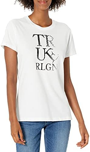 True Religion womens Tilted Short Sleeve Crew Neck Tee T Shirt, Optic White, X-Small US