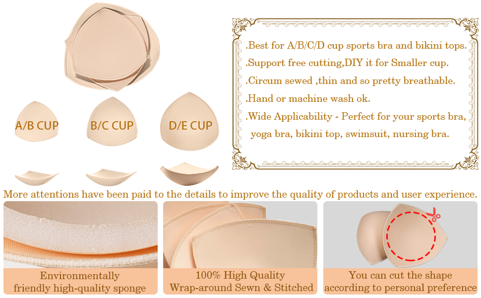 【Suitable occasions】: This push up breast bra cups are suitable for most kinds of underwear with pre-existing gaps,perfect for sports bra, Yoga bra, nursing bra, swimsuits, Bikini top, bathing suits, evening gowns, wedding dresses and daily bra.