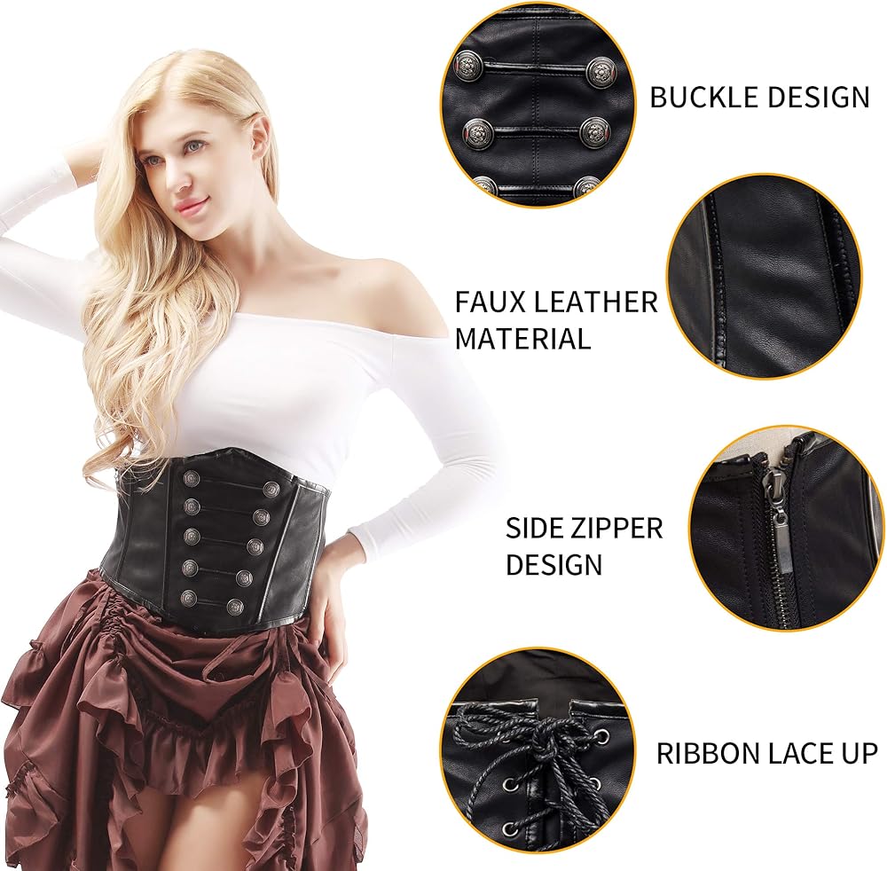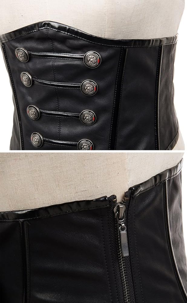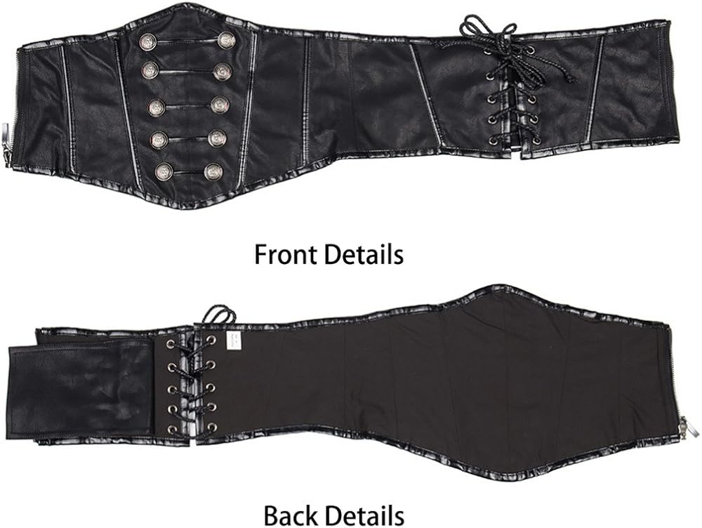 Back Design: Ribbon Lace Up;The corset is boned for support with high quality workmanship and High quality faux leather material to sculpt an hourglass figure