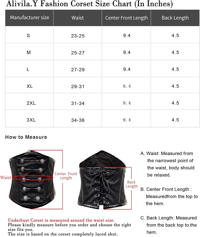 Click "Size Chart" next to the size selection and read the detail Sizing infomation of "Corset & Bustiers".