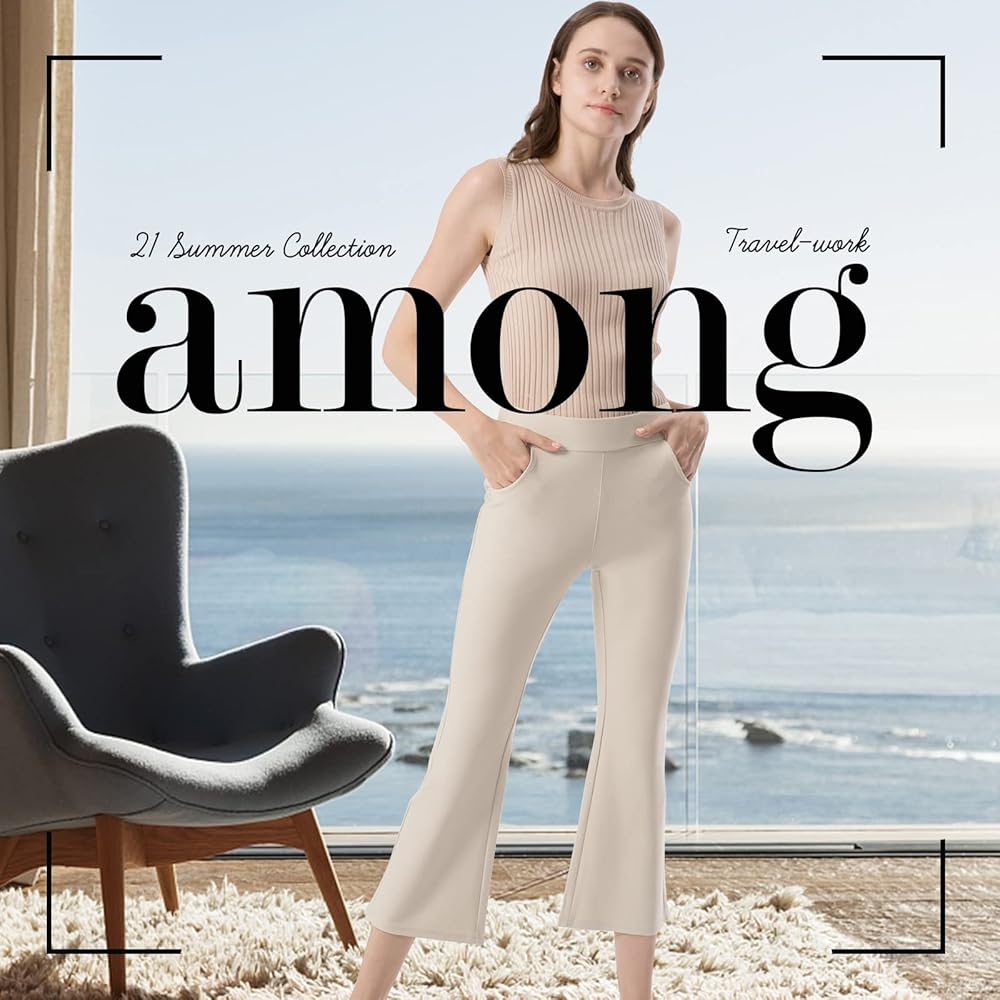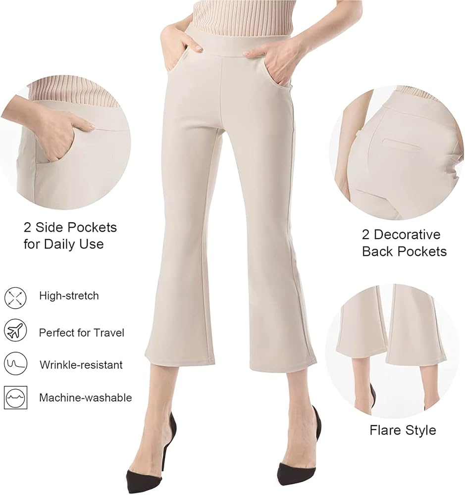 Ginasy Capri Pants for Women Business Casual Summer Dressy Pull On Stretch High Waisted Bell Bottom Flare Yoga Work Trousers