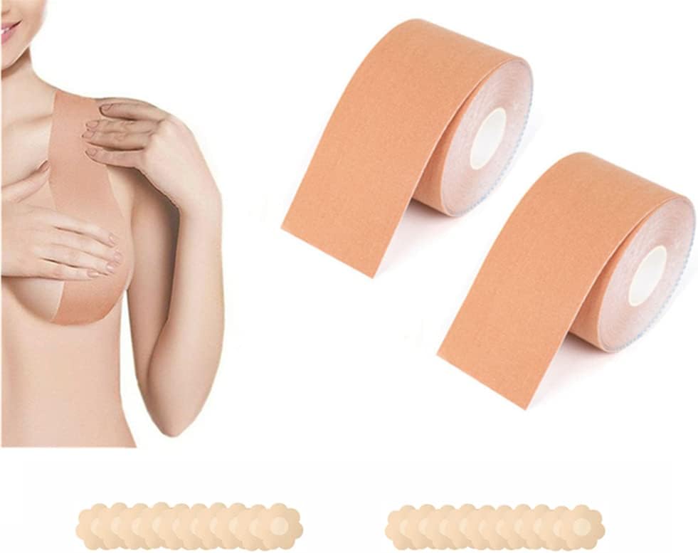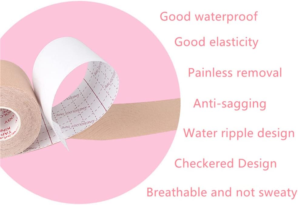 (Wide Application) Our chest lift tapes are perfect for backless, strapless dresses, tops, t-shirts, wedding dresses, regular suits and swimwear. It can be used with dancing, swimming, normal, work. Also, it can be used as sports tape for running, resting, swimming, working or recovering from knee pain, shoulder pain, shin splint, back pain.