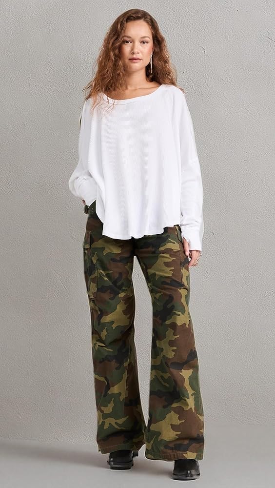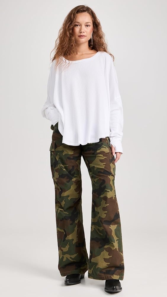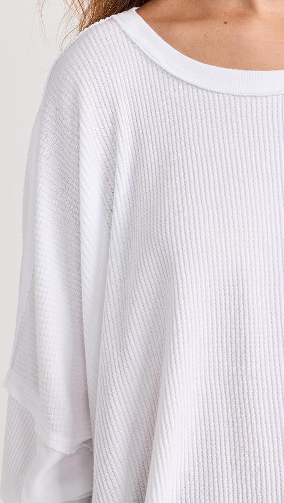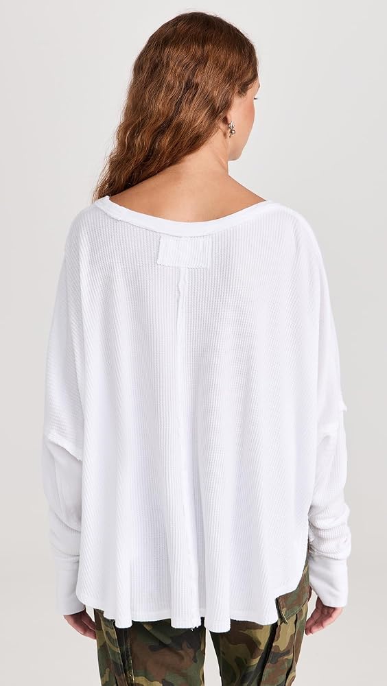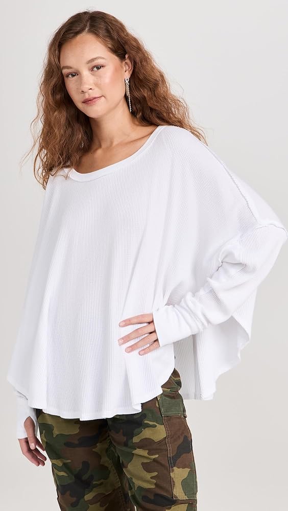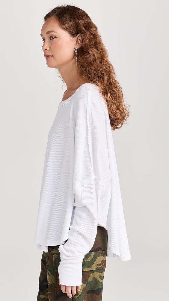 Style an edgy look in the drapey and oversized waffle knit Free People Microphone Drop Thermal top designed to add shape and texture to absolutely any outfit. Features wide scoop neckline, dropped shoulders, exposed seaming, rounded bottom hem, and thumbhole details. Relaxed, slouchy fit. 100% cotton. Machine washable.